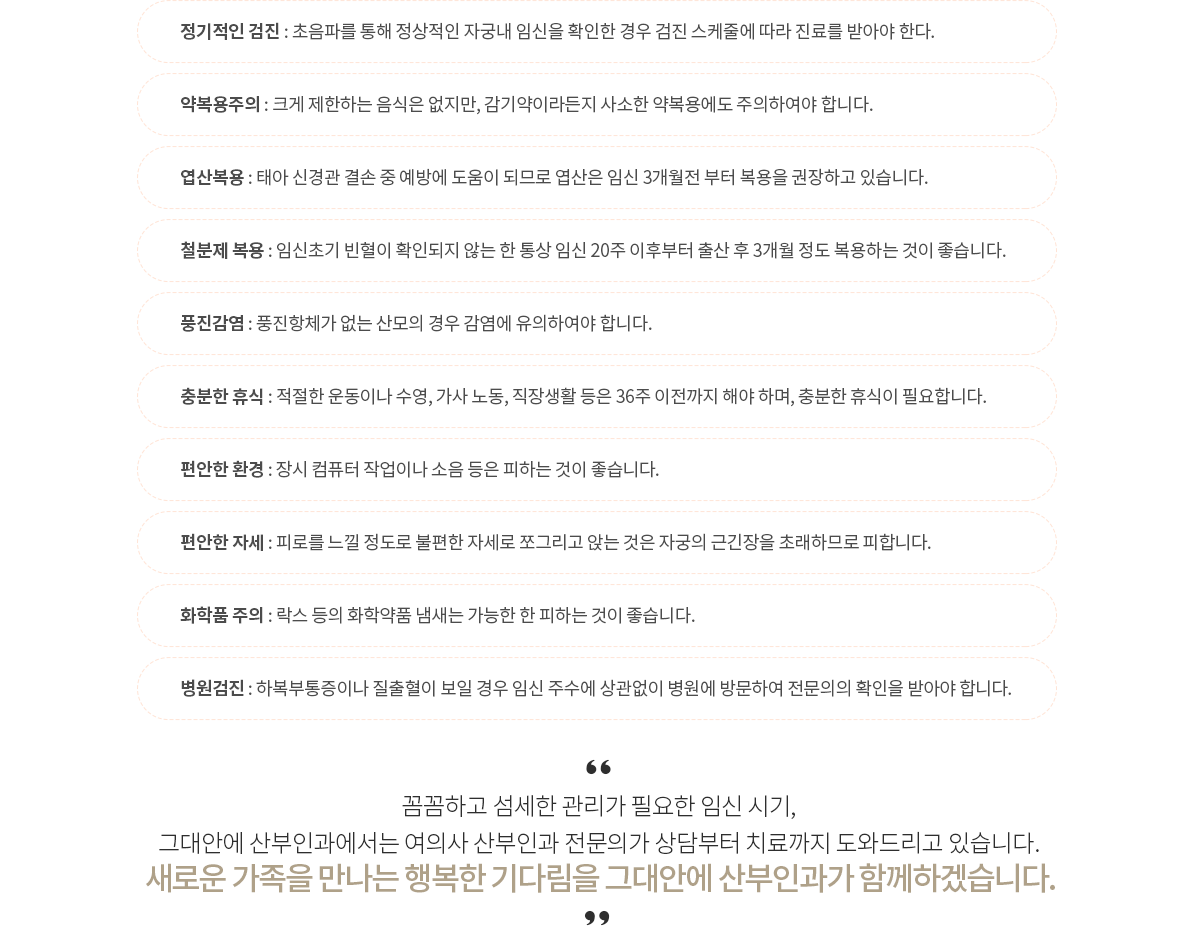 임신으로 인한 여성의 신체변화는 매우 큽니다.그러나 임신의 초기 증상은 그 변화의 크기보다 미약해서 잘 느끼지 못하는 경우도 많습니다.정확한 임신진단에서 관리까지 그대안에 산부인과와 함께 상의하세요.