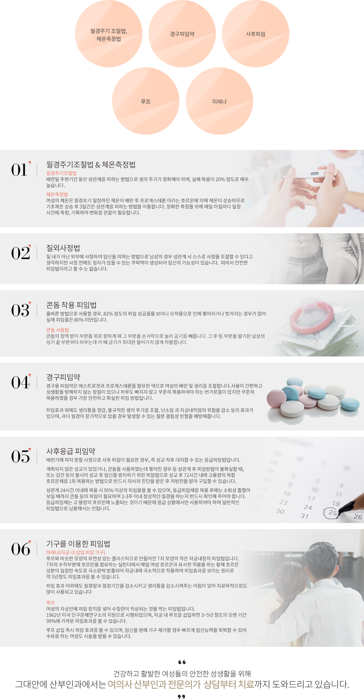 피임방법은 다양하지만, 나에게 가장 적합한 피임법을 선택하고 올바르게 유지하는 것이 가장 중요합니다. 나보다 나를 더 잘 아는 그대안에 산부인과 여의사 산부인과 전문의가 도와드리겠습니다.